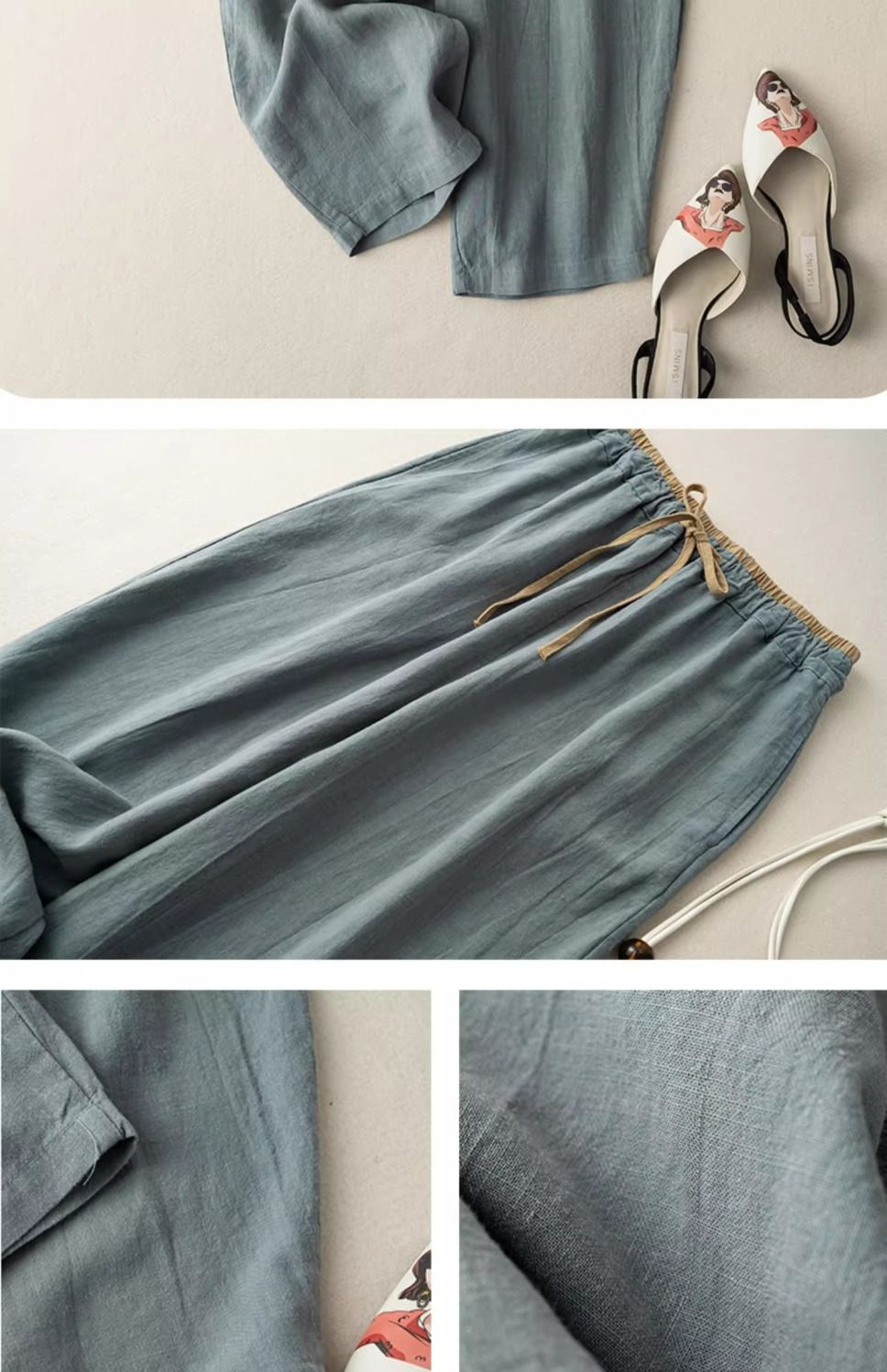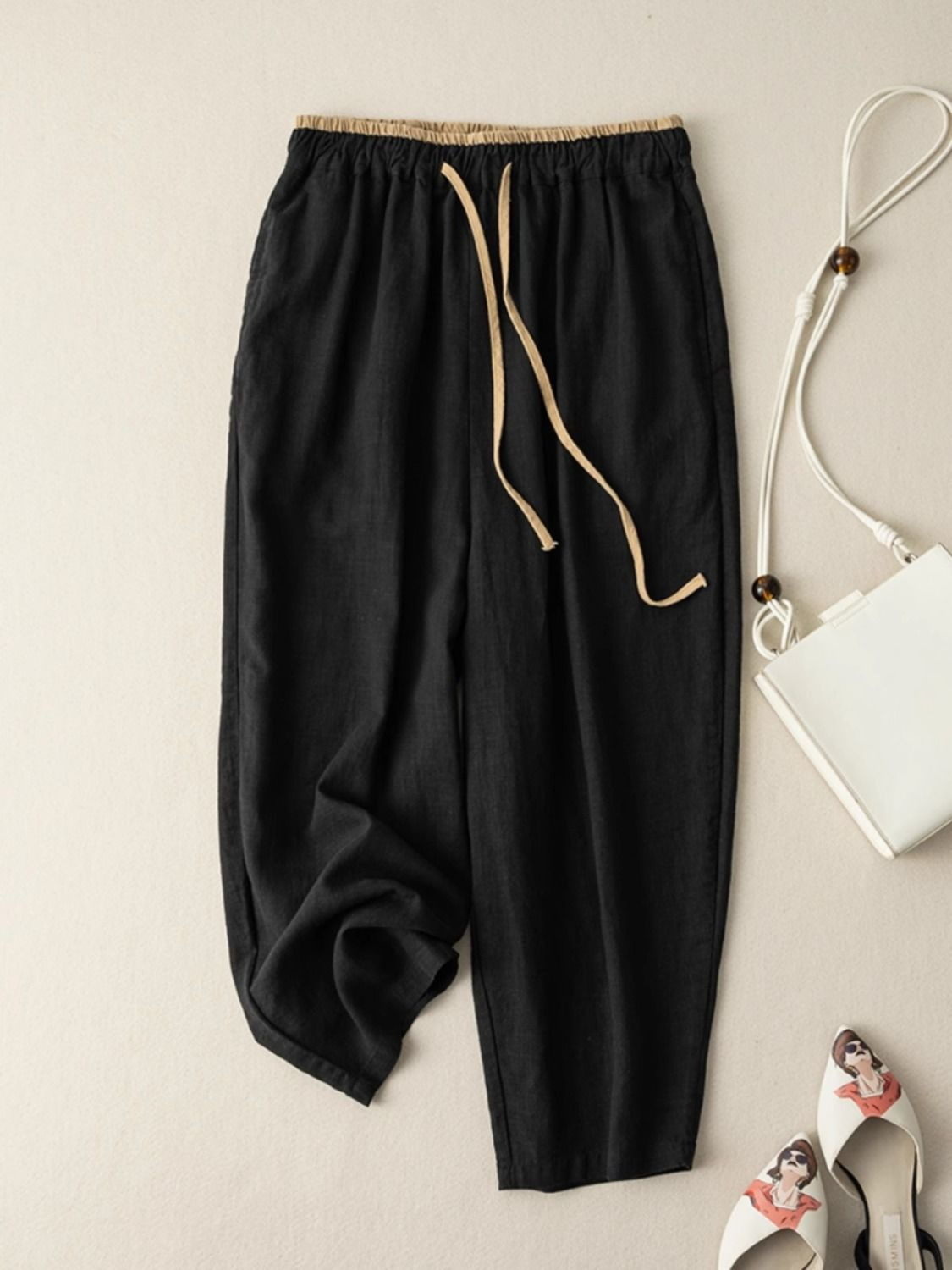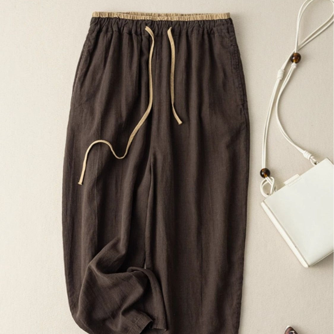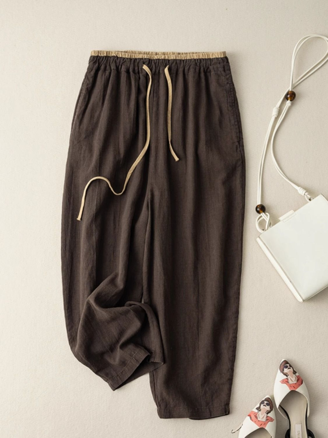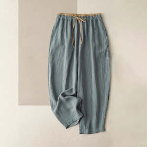 Womens Retro Korean-Style Simple Cotton-Linen Wide-Leg Casual Pants