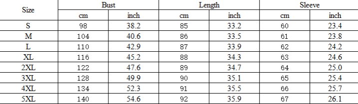 Sizes: S, M, L, XL, 2XL, 3XL, 4XL, 5XL