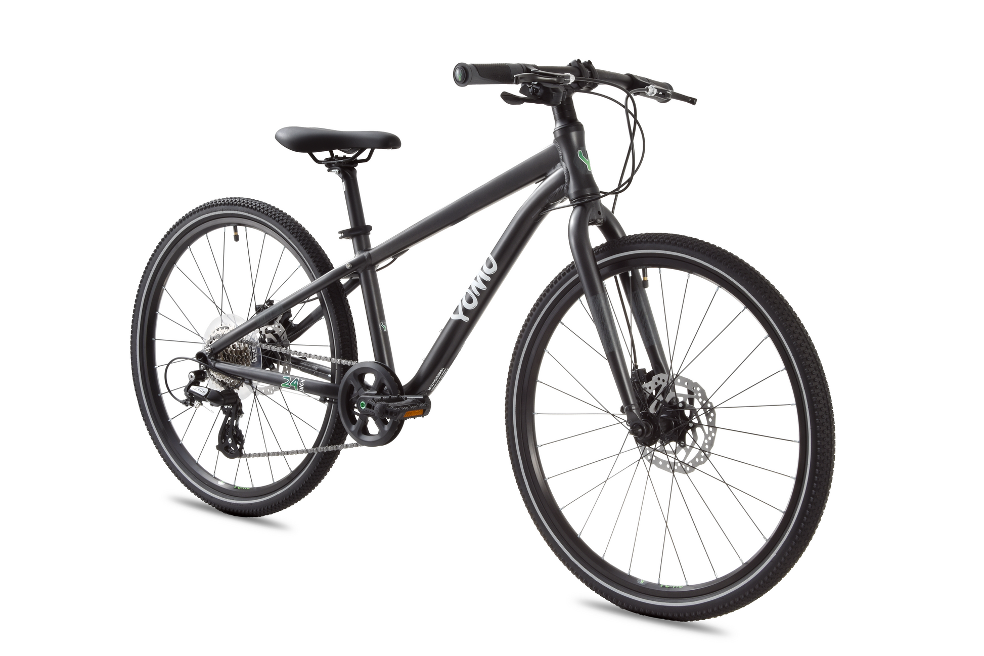 The YOMO 24 kids bike is a lightweight 24-inch pedal bike, designed for growing riders taking on new challenges. At just 9.4 kg, it features an 8-speed Shimano drivetrain and powerful Tektro disc brakes, giving young cyclists the control, confidence, and reliability they need to ride further.